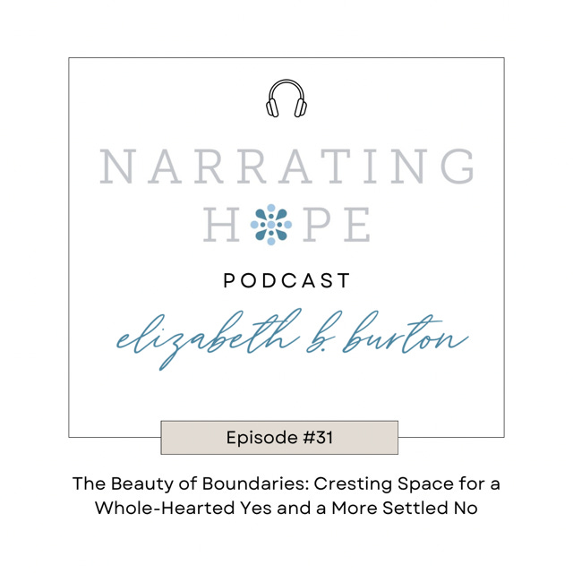Elizabeth shares about the goodness of boundaries--emphasizing that boundaries are healthy, not mean, and lead to more whole-hearted yeses, which then impacts there being less resentment in relationships and in general. Elizabeth encourages the naming of values and the consideration of priorities for the season that you are in. By examining these two things, it can become more clear what your yeses are and where you need to say no.