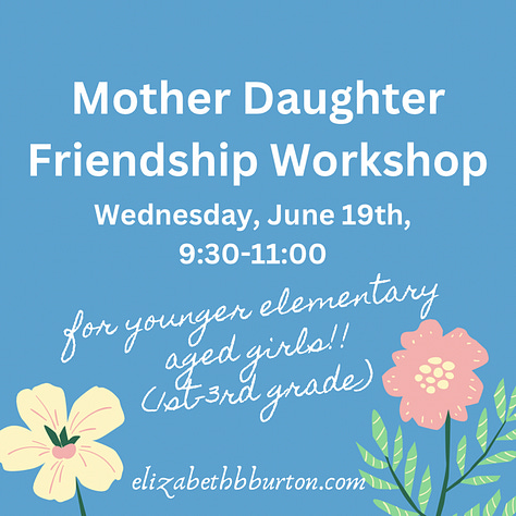 This past year I have loved being hosted for workshops by others in the community, yet I am thrilled to now offer some small, conversational workshops in hopes that they will be an encouragement and a support to those who can attend. The first round of friendship workshops were so well attended, and I was so encouraged that there are now new upcoming dates!