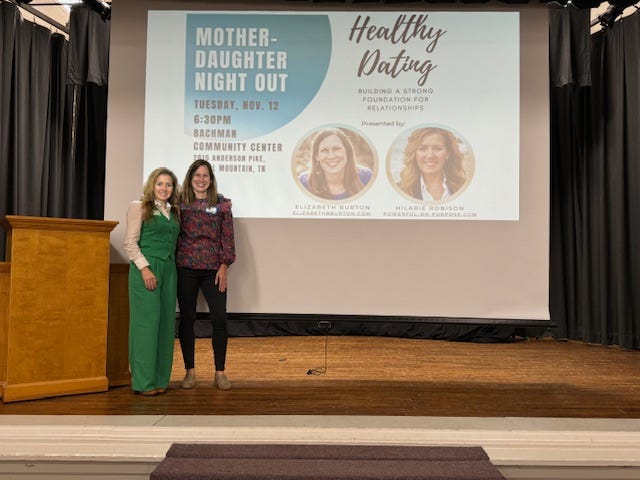 I loved this recent opportunity to gather with mothers and daughters for connection, desserts, and then time to focus together on healthy relationship principles. Thank you to everyone who joined us, and I hope that your daughters are encouraged and have a clear understanding of their worth.